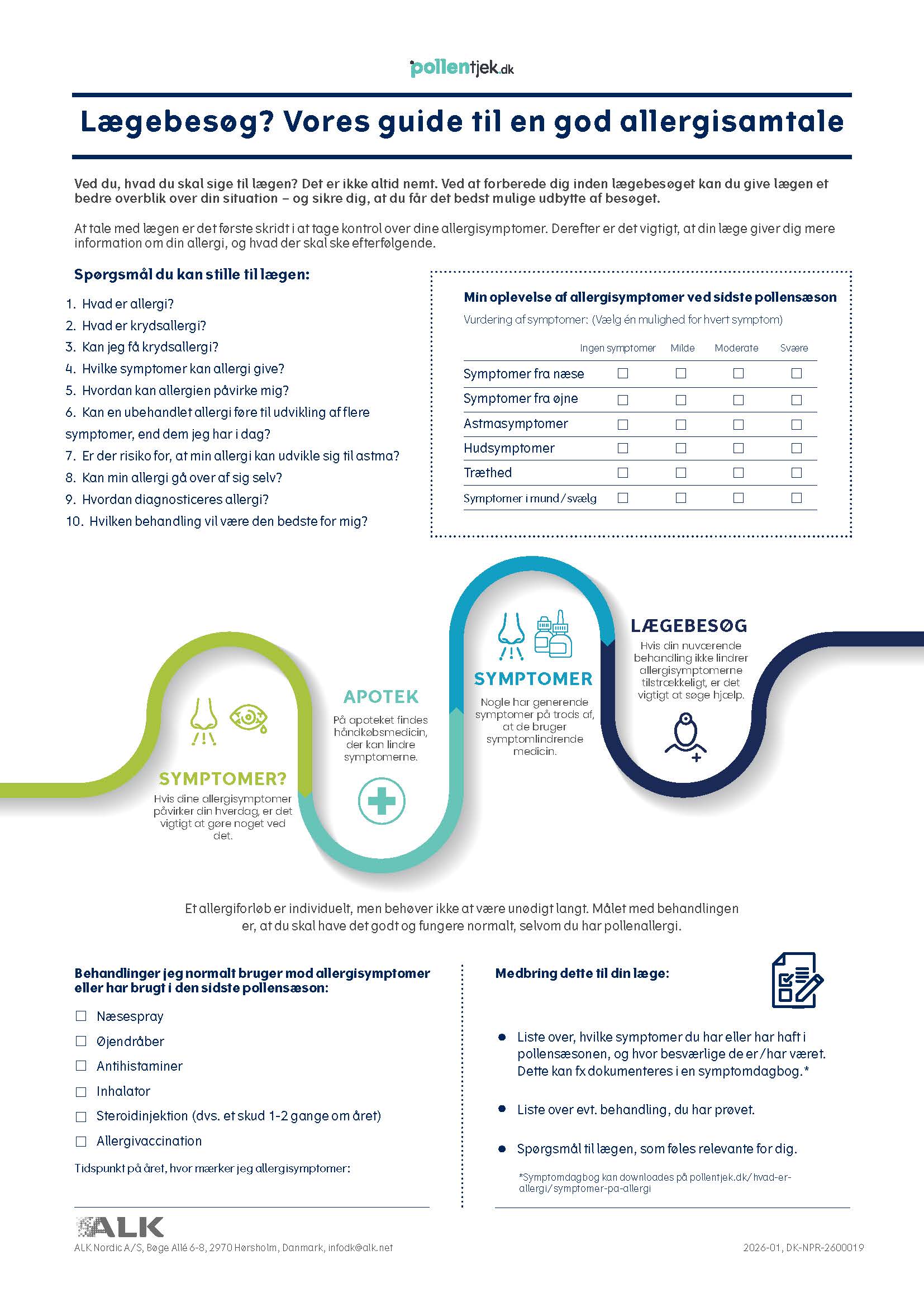 Det er en god idé at forberede sig på spørgsmål omkring dine gener, så du lettere kan forklare, hvordan du oplever din allergi. Vi har udarbejdet en guide, du kan bruge til forberedelsen.